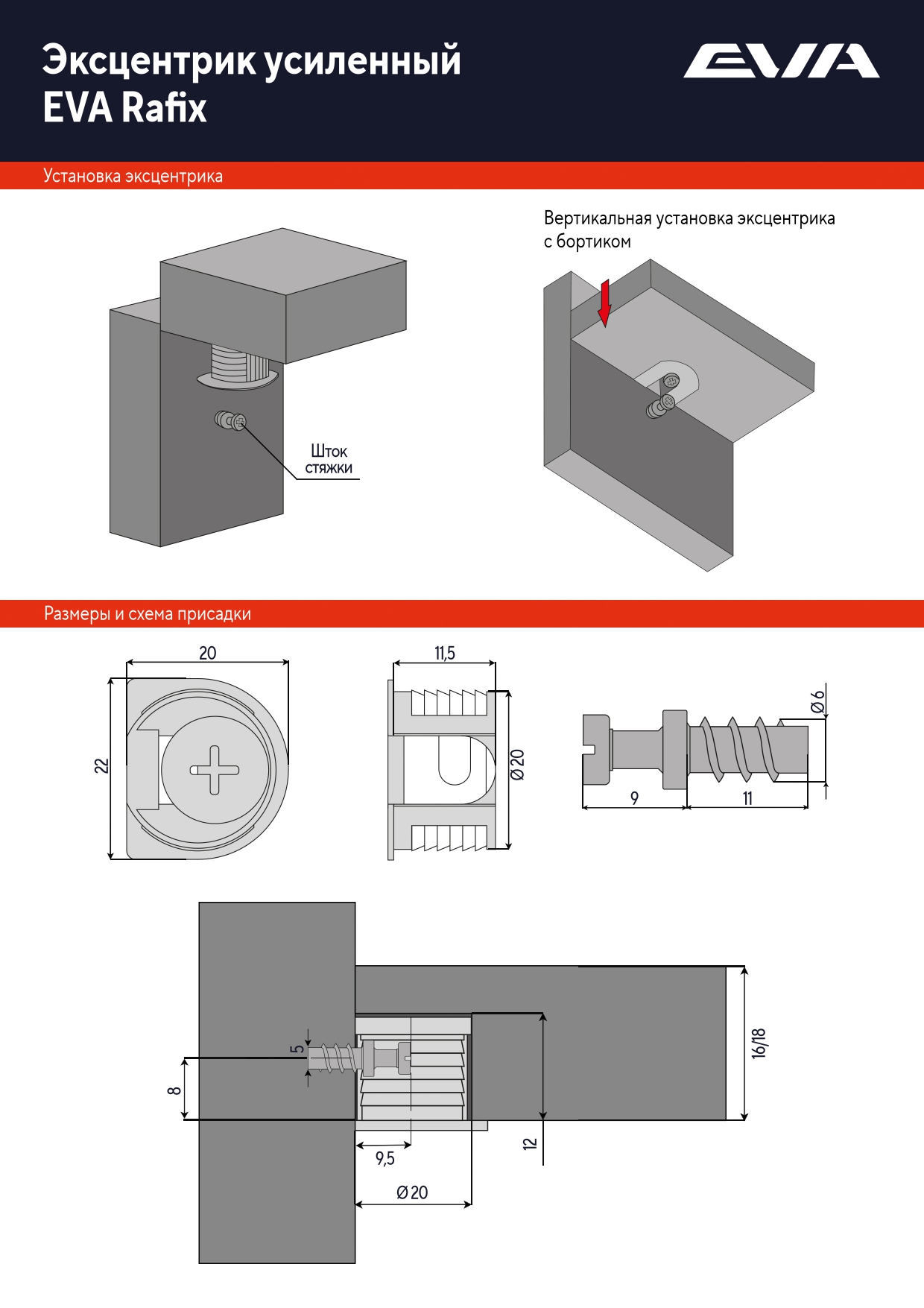 • Ребристая поверхность корпуса эксцентрика гарантируют его фиксацию в отверстии;