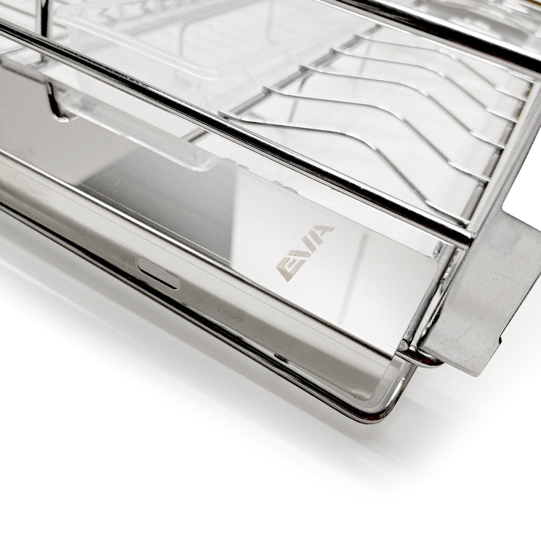 Корзина-посудосушитель выдвижная EVA Light Side (база 600 мм) — это эргономичное решение для хранения посуды в нижнем модуле кухни. Плавное и бесшумное закрывание обеспечивает комфортное использование даже при полной загрузке. Внутреннее пространство корзины продумано до мелочей: секция с ребристой сеткой надежно фиксирует тарелки разного диаметра, а открытая зона идеально подходит для чашек, пиал и другой кухонной утвари. Пластиковый поддон защищает дно от влаги и деформации.