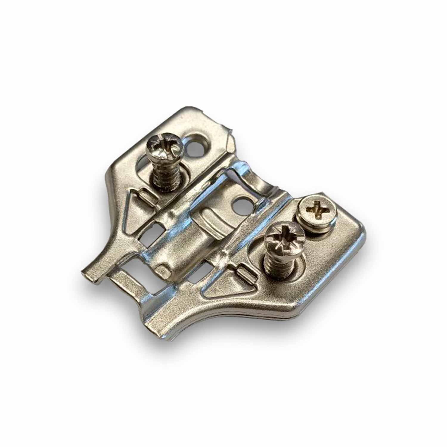 Монтажная планка для быстрого и надежного крепления мебельных петель. Эксцентриковый механизм позволяет регулировать положение петли по высоте и глубине без демонтажа — достаточно поворота инструментом. Планка крепится с помощью евровинта (конфирмата), что подходит для большинства типов корпусной мебели из ЛДСП, ДСП, МДФ.