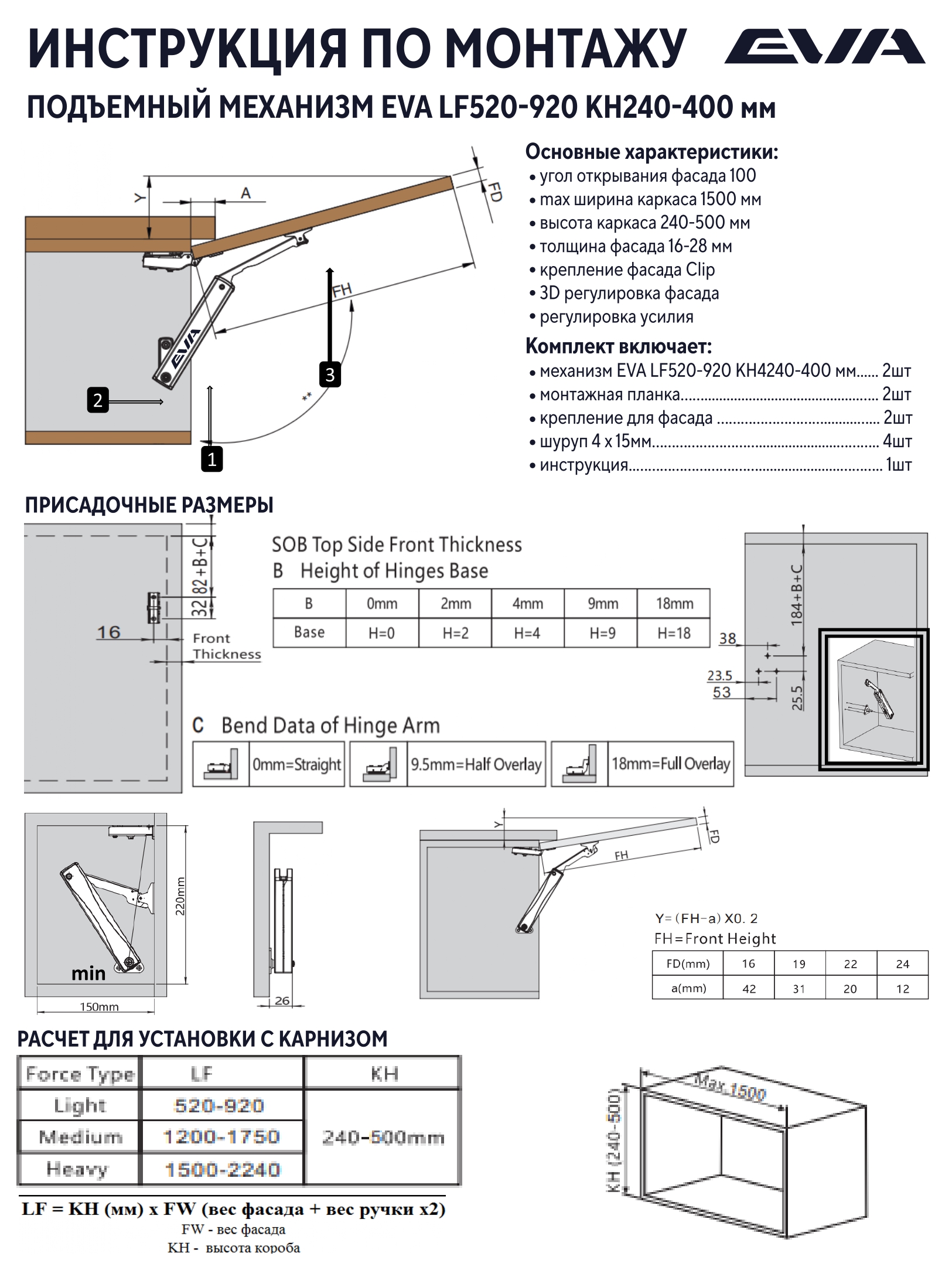 Правильно подобранный механизм позволяет остановить и зафиксировать фасад на любой удобной высоте.