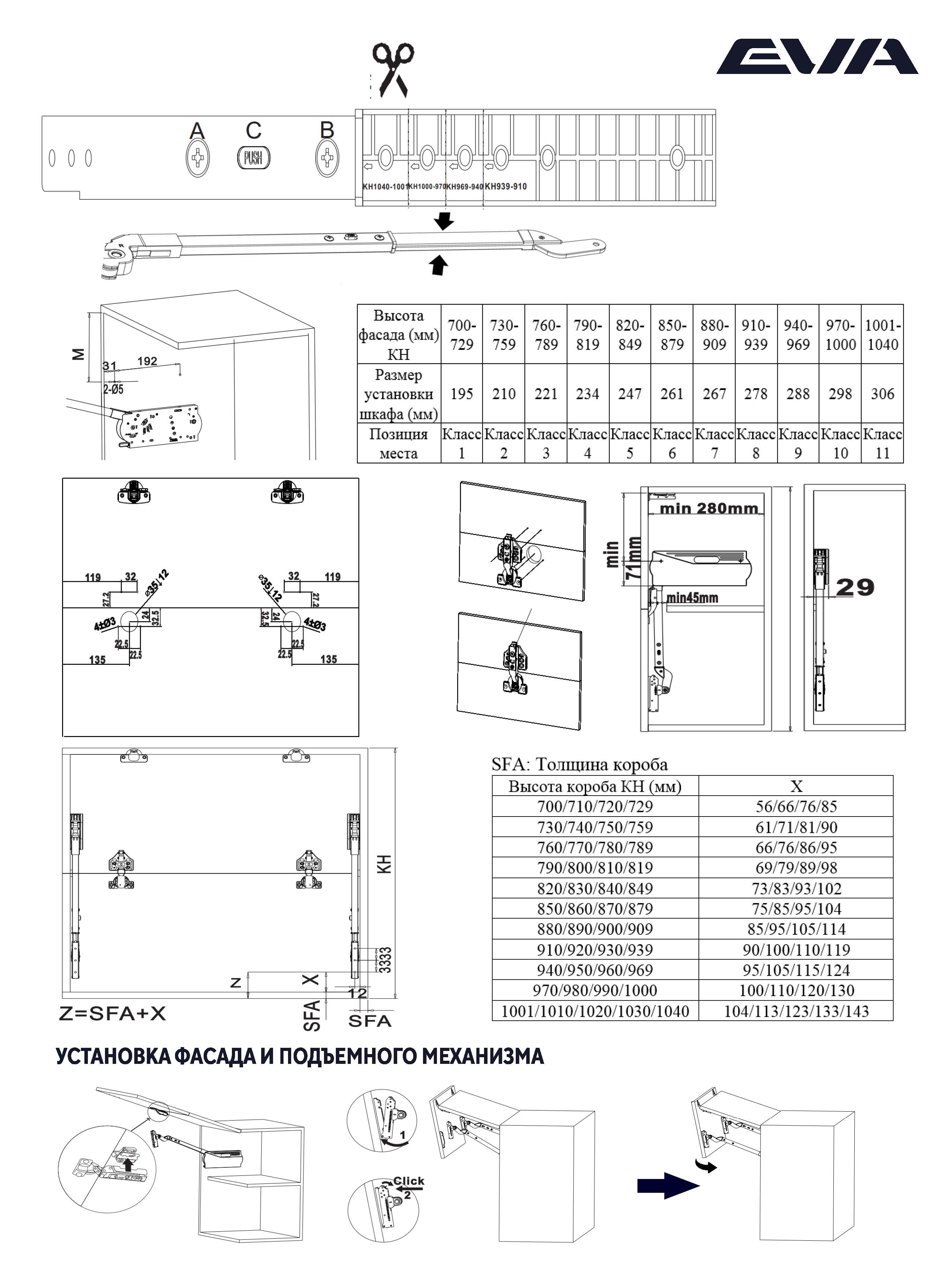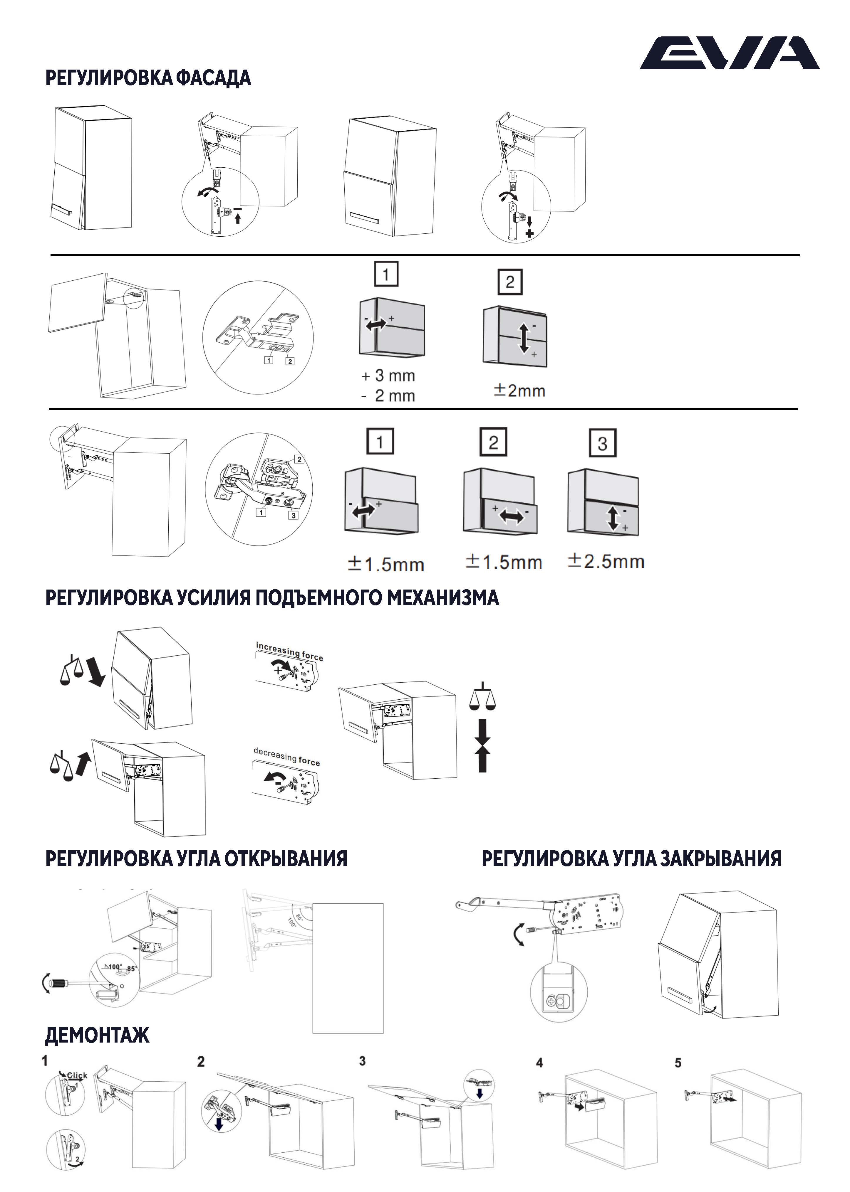 Правильно подобранный механизм позволяет остановить и зафиксировать фасад на любой удобной высоте.