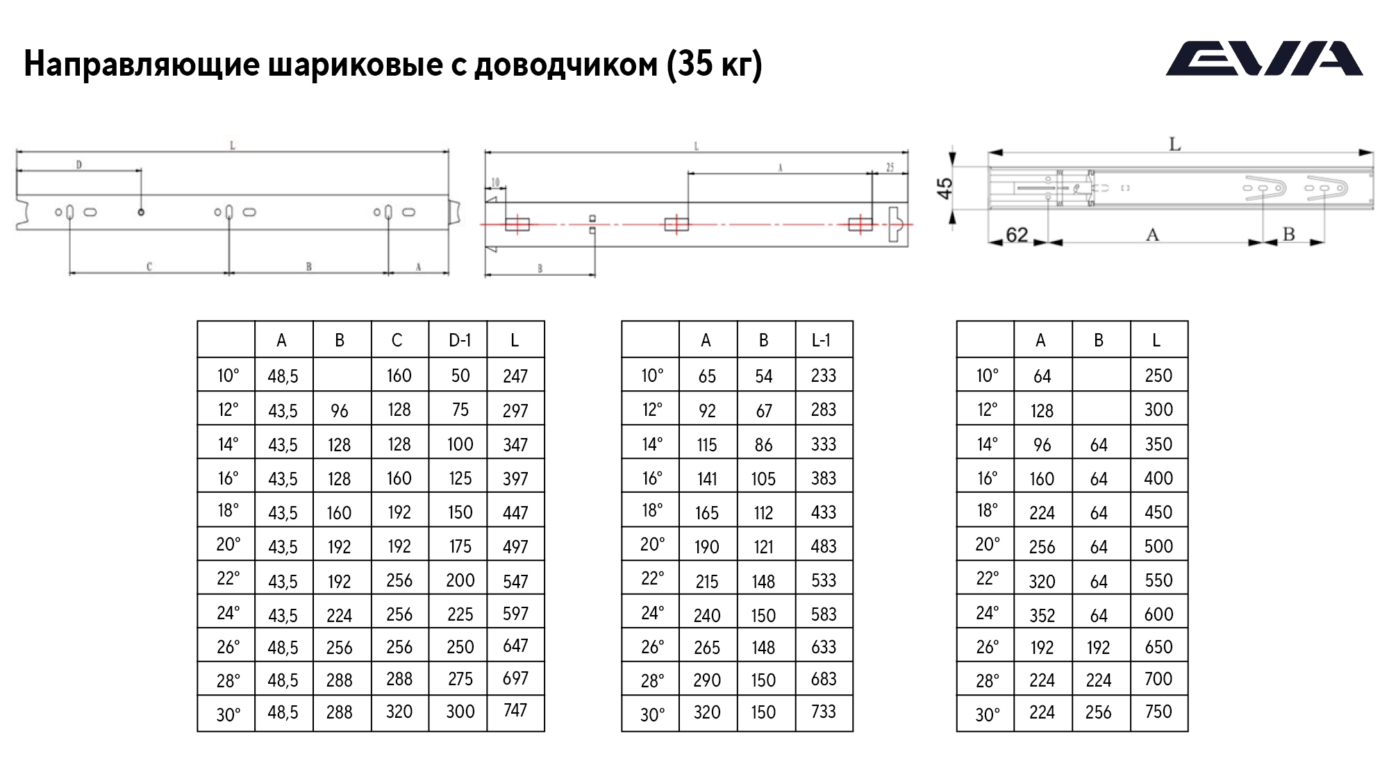 Мы производим шариковые направляющие только с «честной» высотой 45 мм и толщиной металла до 1,5 мм. Это позволяет добиться высокой грузоподьемности - до 35 кг.